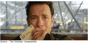 “You don’t qualify for asylum, refugee status temporary protective status humanitarian parole non-immigration work travel visa, you at this time are simply “unacceptable”. – Frank Dixon, “The Terminal,” Dreamworks, 2004