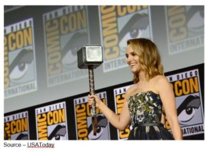 Thor – At Comic-Con, Marvel Studios passed the Thor hammer to Natalie Portman.