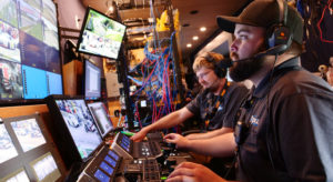 “In between shows, we’re also testing graphics and checking focus on cameras. We feed these tests from a separate M/E, which allows us to simultaneously project the still or video loop on the screens while focusing on the M/E being used for testing. We also often have a US only stream which has to do with the networks and licensing agreements. What we feed to web has to be a little bit different than what we feed to the network, so we use a separate M/E to do that. Essentially, we’re doing a couple of sub cuts with these different M/Es.”