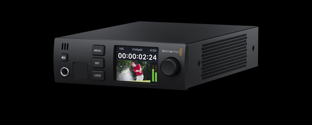 Blackmagic 2110 IP products conform to the SMPTE ST-2110 standard for IP video, which specifies the transport, synchronization and description of 10 bit video, audio and ancillary data over managed IP networks for broadcast. It can also re-sync SDI inputs to a common PTP clock or external gear can lock to the reference output that’s also generated from the PTP clock.