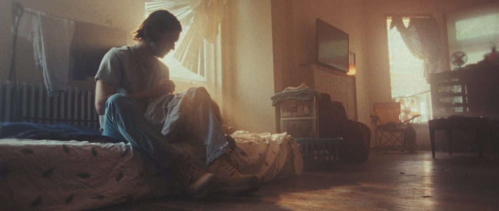 “Justin really wanted a heavy grain, so we looked at many grain options, various real scans and different plugins, but I ended up using the built in Resolve grain tools due to the speed and control that can be achieved. Specifically, I used a channel splitter with different grain profiles on each RGB node as this gave the most embedded feeling to the grain, rather than a simple overlay feel. The halation was also done using the built in Resolve OFX, which gave me control to dial in per shot. For the lens aberrations, just about every scene has a variation of edge blur and vignette that we ramped up and down at selective moments. This was achieved with the camera lens blur OFX, lens distortion OFX, and two circular Power Window nodes dropping the gamma.”
