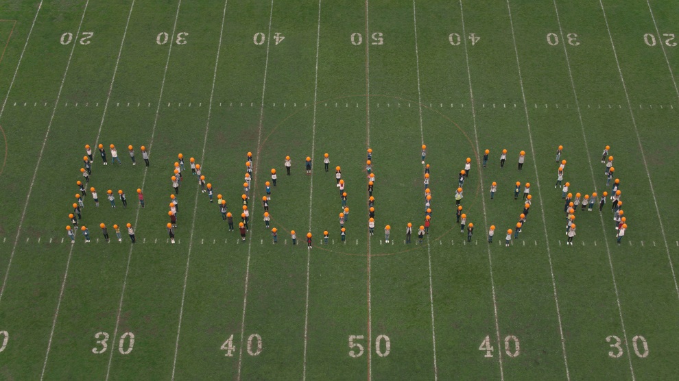 Set to the inspiring, newly-anthem I’m Still Here from Australian singer/songwriter Sia, the video features some 130 young dancers from New York’s National Dance Institute in an emotionally-charged and inspiring call to action. The dancers take on the roles of students in a stylized representation of the effects of gun violence in the classroom. Ultimately, the kids come together on a football field where they hoist orange balloons over their heads and form the word “Enough!” Accompanying titles provide the tragic statistics of gun violence and children, and direct viewers to the Everytown website.