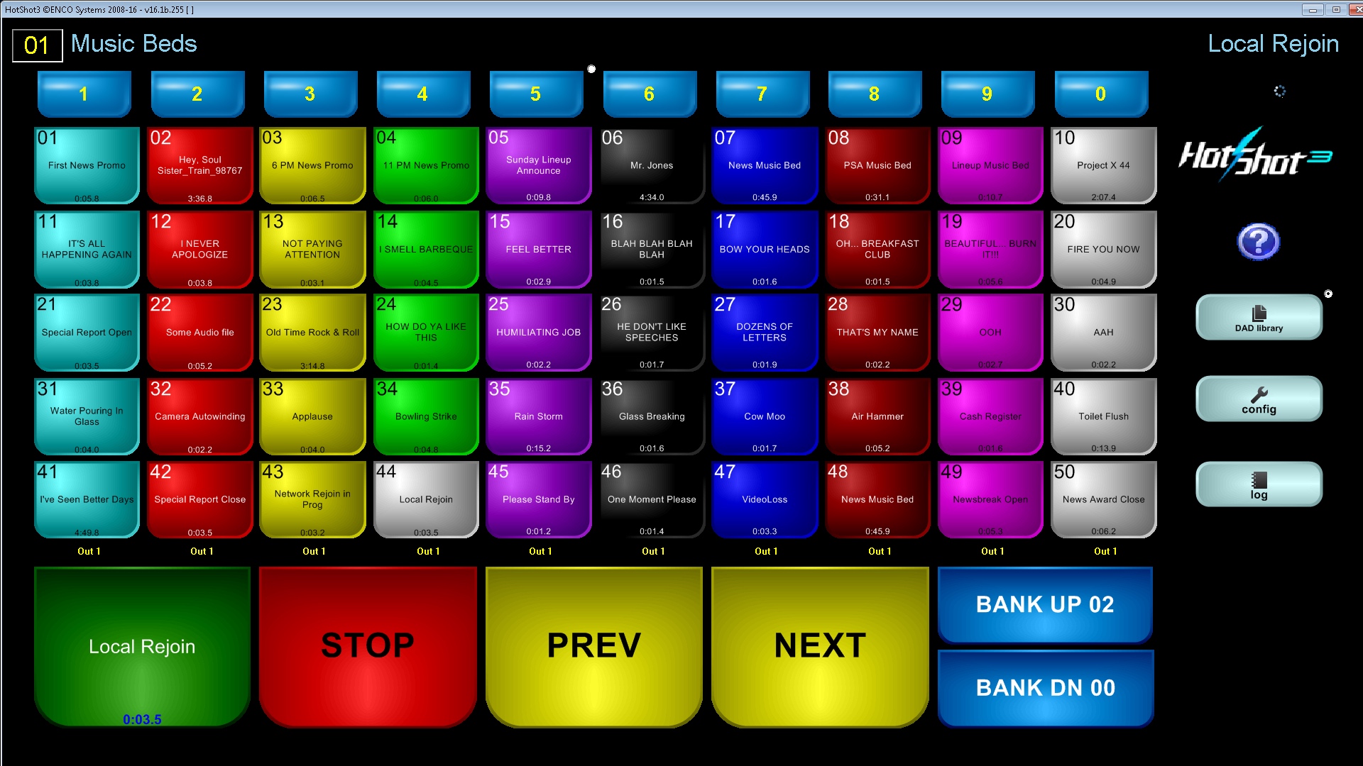 HotShot3 provides several playback options, including on a pre-labeled 80-button keypad or touchscreen operation – as well as remote operation using an iPad – to support all broadcast and production applications. The layout adopts ENCO’s on-screen “button box” layout to accelerate learning curves and allow users to navigate up to hundreds of active icons with ease, each displaying a visual thumbnail with clip information.