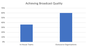 While 43% of companies still manage video production in-house, those outsourcing to professional agencies or production companies are more likely to achieve broadcast-quality results. Sixty percent of companies that outsource report their video quality meets desired standards, compared with just 36% of those relying solely on in-house teams – highlighting the value of specialized external resources for high-quality output.