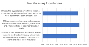 The survey findings illustrate that high-quality video is becoming a vital asset for organizations aiming to engage customers, investors, and employees. A powerful 89% of respondents note that their stakeholders now expect live-streamed events, such as product launches, earnings calls, and customer conferences, to meet broadcast quality standards. Further, 84% of enterprises would only partner with a live video provider with trusted broadcast expertise, emphasizing the need for reliability and flawless execution.