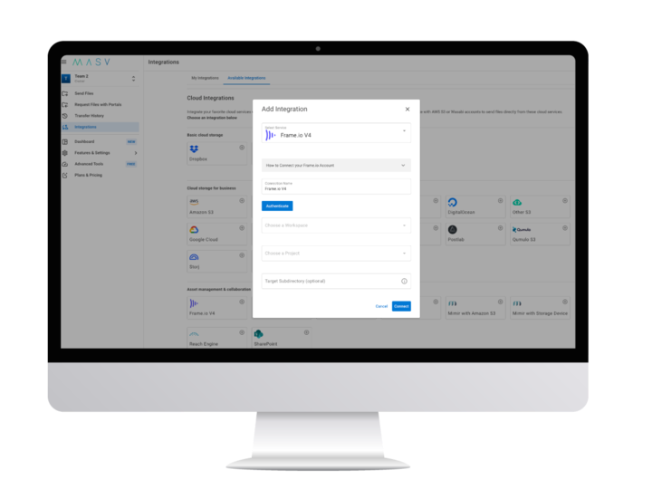 The MASV-Frame.io V4 integration will be available to all MASV users later in 2025.