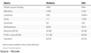 In fact, We trails its closest competitor (IWC) in every area but one – the one that counts if you’re ready to go public … valuation.