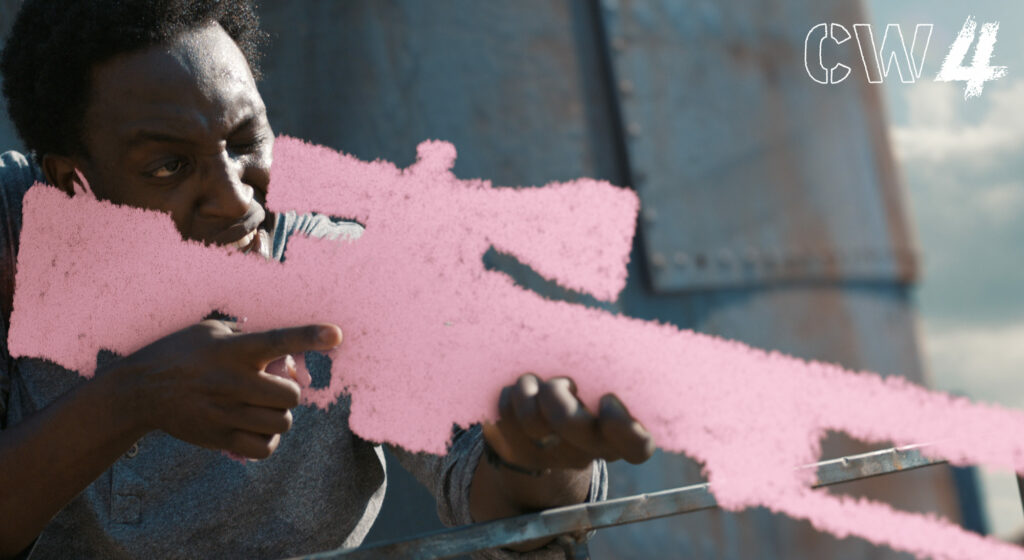 All materials were composited in DaVinci Resolve Fusion. “Fusion’s node based workflow was incredibly helpful,” said Forde. “On a project like this, with so many shots with similar compositing methods needed, we were able to utilize the node workflow to easily swap in and out assets, as well as tracking data to replace weapons and add them to new shots.”