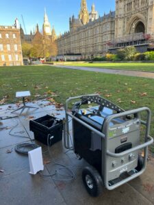 Green Kit recently rented out the Goat to power a satellite link from London to Doha, ensuring that the live broadcast from outside of Westminster ran smoothly for the four-hour duration. Martin Langley, cameraman for the broadcast, commented, “Hiring the Goat for this broadcast was a game-changer. It saved the crew tremendous amounts of time with a quick and easy set-up, and being a silent battery generator, we didn’t have to worry about noise interference.”