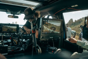 He was glad to try out the new SmallHD Cine 13 monitor as soon as it arrived: “We used it on a Chevy commercial with a top DP in the Utah mountains. Space was at a premium inside our Ford Raptor Arm Car.” Capturing the images was a RED Helium with a Fujinon 19-90 zoom lens. It was equipped with a Teradek Bolt 4K Max that transmitted several thousand feet back to the video village where the agency and clients watched in real time.