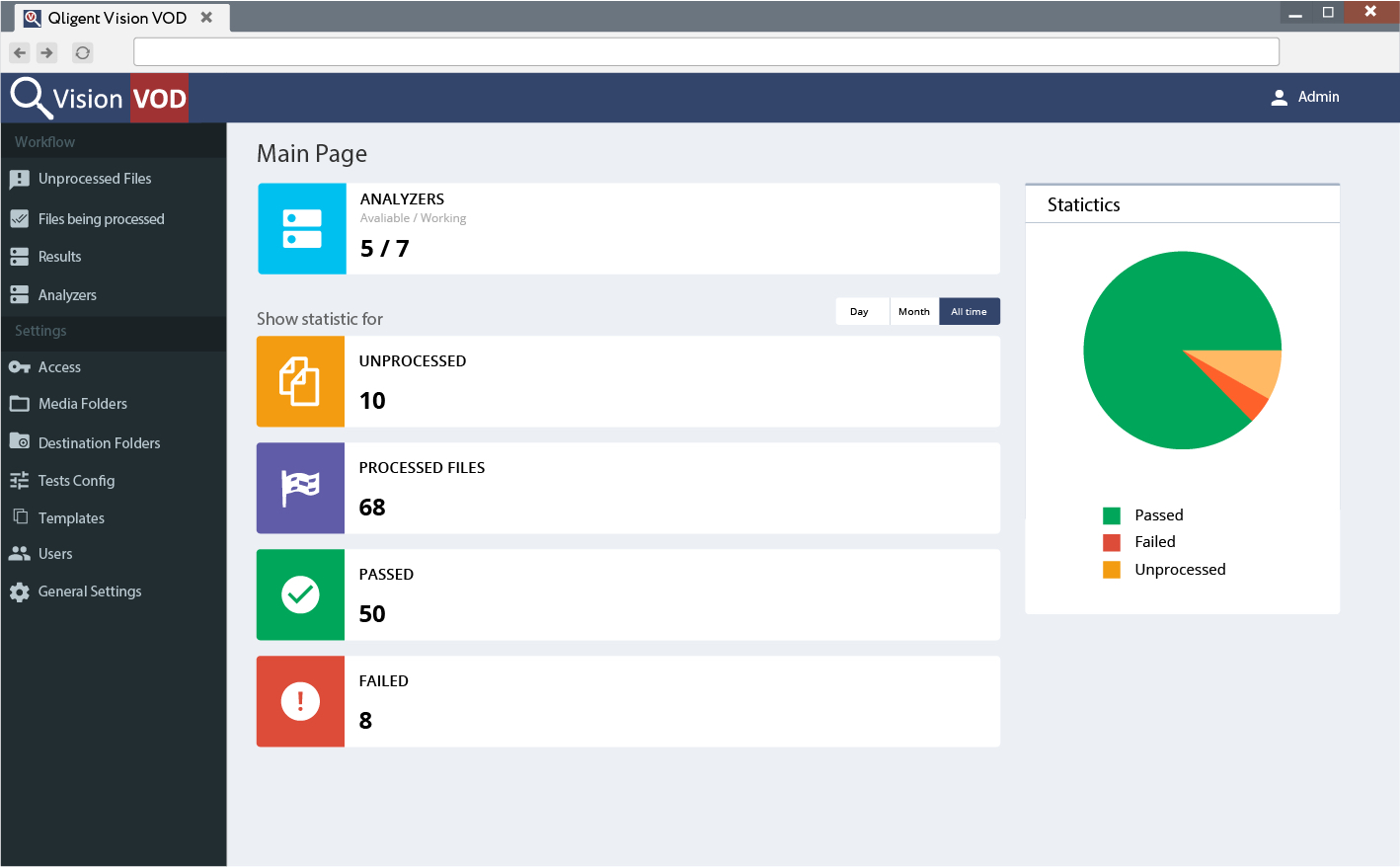 The infinitely scalable software solution enables immediate verification of media files, wrappers, QoE, and content metadata, which includes automated audio level normalization, at the origination point. Following these front-end file-based QC verification tasks, Vision-VOD offers clear identification of audio, video and metadata defects from origination through delivery for networks of any scale, and without any end user operation. Furthermore, thresholds for any level can be established and continually adjusted for optimized performance, with the added power of management by exception.