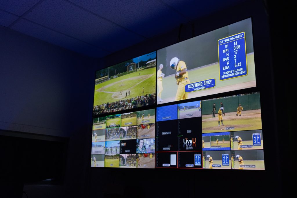 To capture the action at both home and away games, the URSA Broadcast G2s are positioned around the baseball field, feeding into the ATEM Constellation 8K, which sits in a control room. Two of the ATEM’s four M/Es are used for live switching the games’ broadcasts, while another M/E is used as a router for various monitors around the control room and venue. Ellis notes that one of the ATEM Constellation 8K’s most helpful features is SuperSource, which they use extensively for “Mic’d Up” segments, where players wear microphones to share their real time thoughts and reactions during a game.