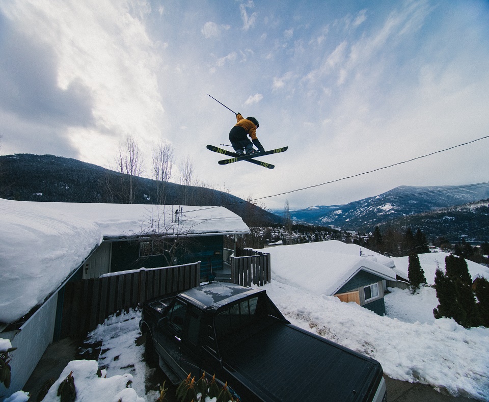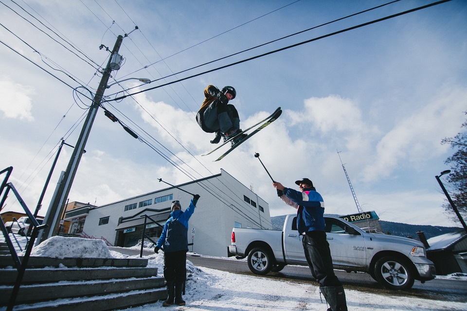 That shot, says Mossop, involved the support of virtually the entire local ski community. “Almost everyone we met in Nelson had seen the original J.P. Auclair segment and loved it so much that they wanted to help us out,” he says. “For that final scene, we put a call out for extras and got a hundred or so volunteers. They helped us shoot or acted as extras. It was an incredible display from kind-hearted people.”