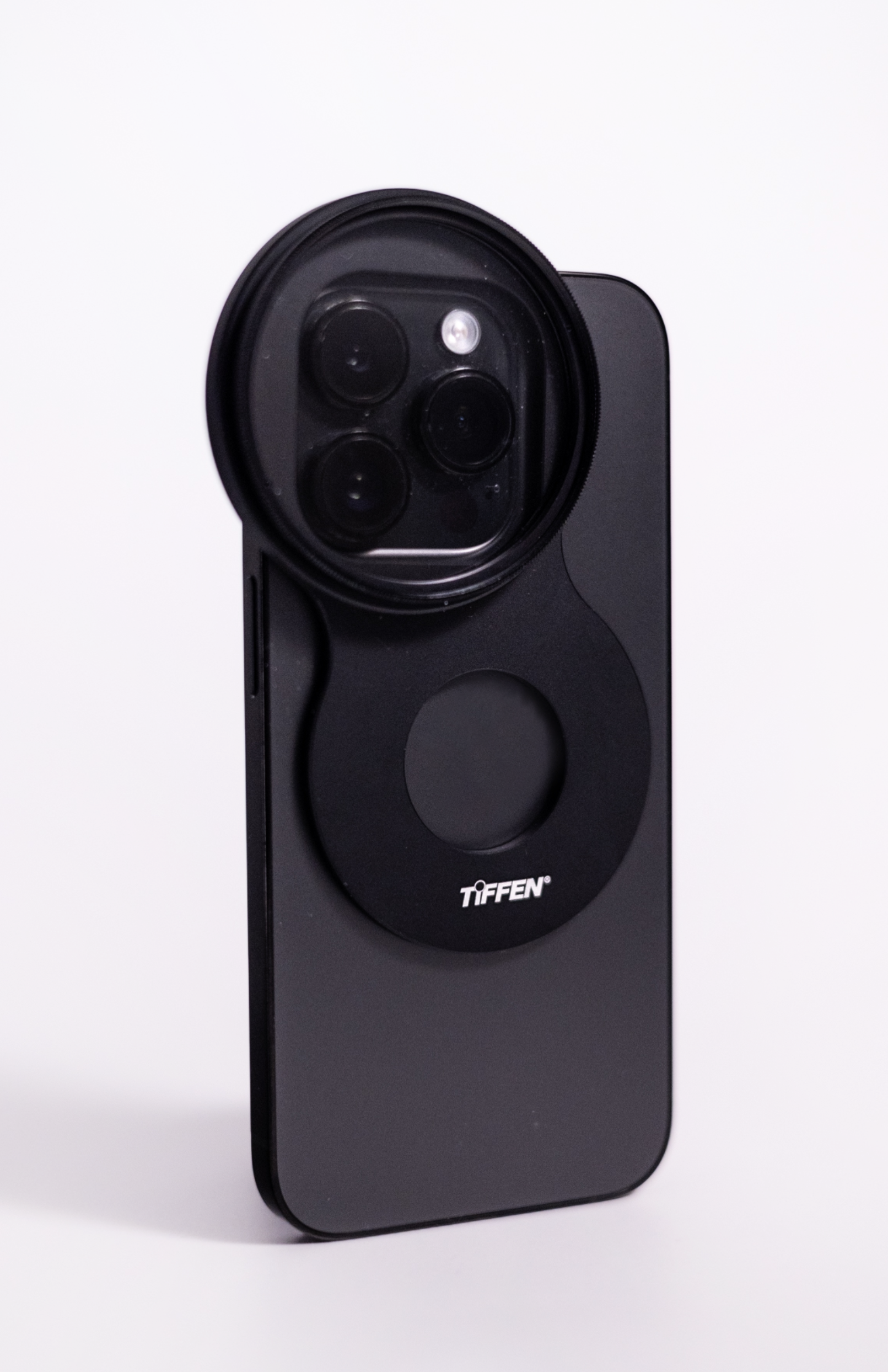 The Tiffen Smartphone 58mm Filter Mount is precision made of black anodized aluminum, built for light weight and long life. It is compatible with iPhone 14/15, 14/15 Pro, 14/15 Plus, and 14/15 Pro Max models. The Tiffen Smartphone 58mm Filter Mount is priced at $29.99 list. Kits are also available. Tiffen Filters are available separately from top dealers worldwide. For details or purchasing visit: tiffen.com/pages/smartphone-58mm-filter-mount